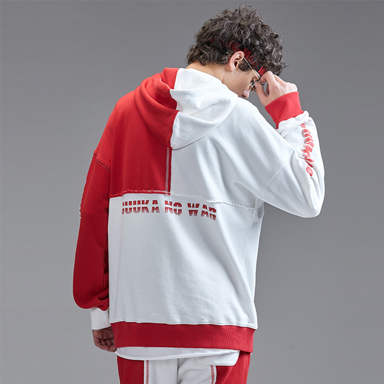 潮牌撞色拼接卫衣男连帽青少年中国红汉字运动嘻哈卫衣宽松