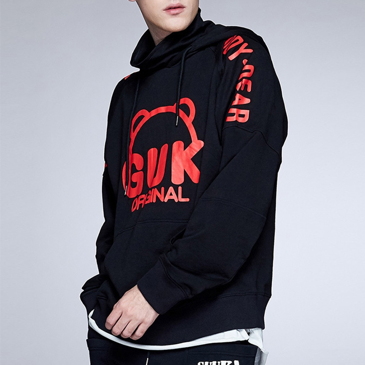 潮牌印花卫衣男连帽日系潮流嘻哈BF卡通黑色大码卫衣外套